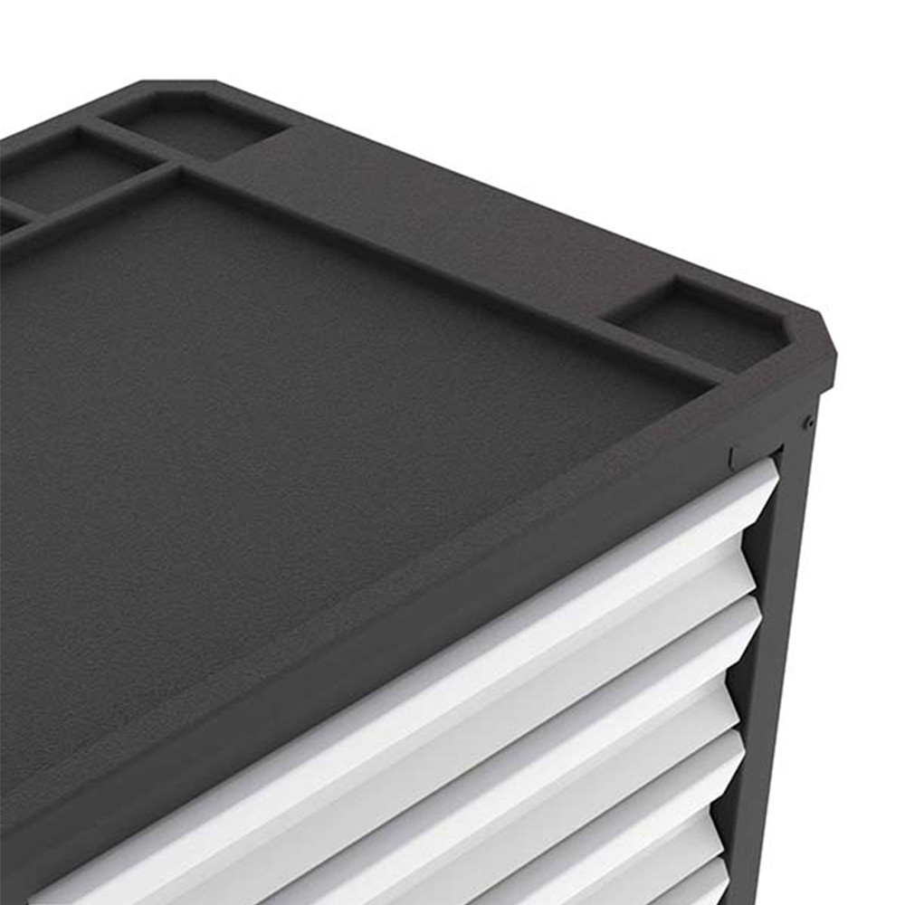 Les tiroirs peuvent être équipés de modules thermoformés, casiers plastiques ou séparateurs en acier galvanisé pour compartimenter l’outillage et affiner encore plus le rangement dans la servante d’atelier.