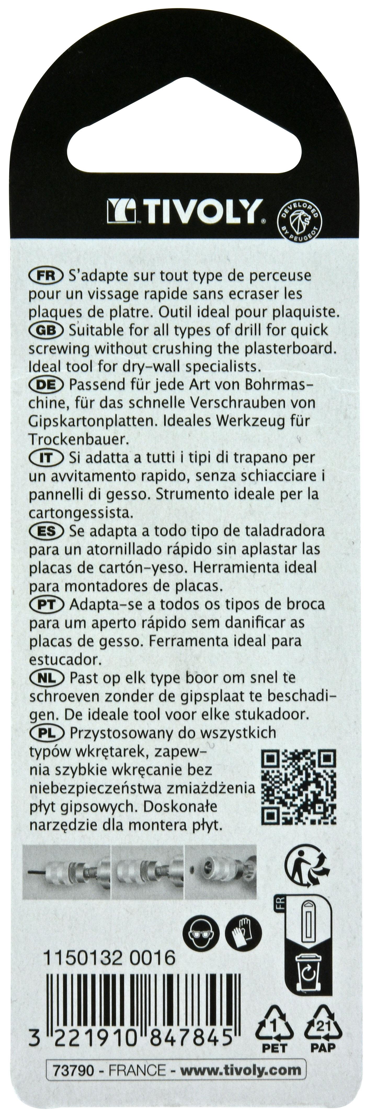 Découvrez l'outil spécialement conçu pour le vissage dans les plaques de plâtre. Ce produit intègre un système de débrayage automatique qui garantit une finition parfaite en stoppant le vissage lorsqu'il atteint la bonne profondeur, évitant ainsi d'endommager le matériau. La bague réglable permet également d’ajuster la profondeur de vissage selon vos besoins, offrant ainsi un contrôle optimal lors de l'utilisation. Que vous soyez un professionnel ou un bricoleur, cet outil vous assurera des résultats précis et de qualité. Son utilisation est simple et efficace, rendant vos projets de plâtrerie plus accessibles et rapides.