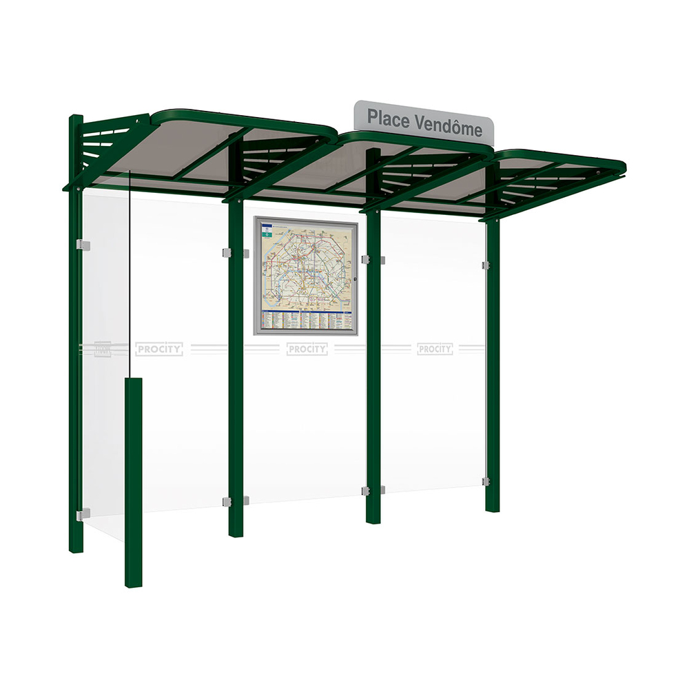 Découvrez Station bus Conviviale bardages verre RAL6005 - Bardage à gauche - PROCITY - 529368.6005 disponible à l'achat