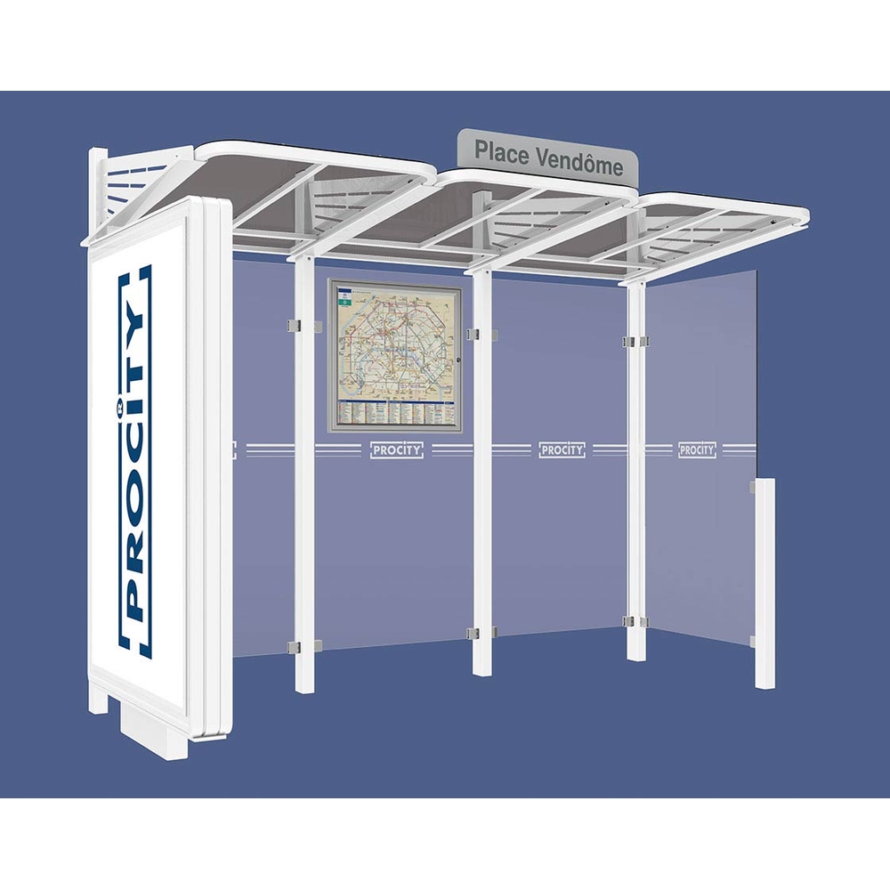 Découvrez Station bus Conviviale bardages verre RAL9010 - Caisson lumineux VIP à gauche et bardage à droite - PROCITY - 529388.9010 disponible à l'achat