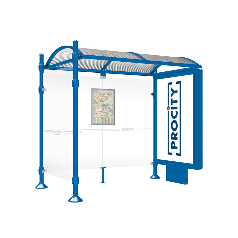 Découvrez Station bus Province Agora RAL5010 - 2500 mm - un caisson lumineux et un bardage latéral - PROCITY - 529352.5010 disponible à l'achat