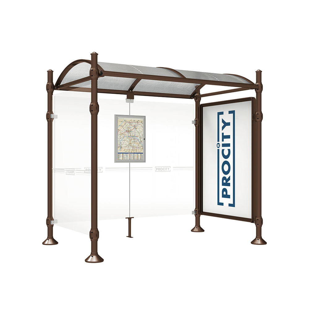 Station bus Province Agora RAL8017 - 2500 mm - une vitrine 2000mm et un bardage latéral - PROCITY - 529332.8017