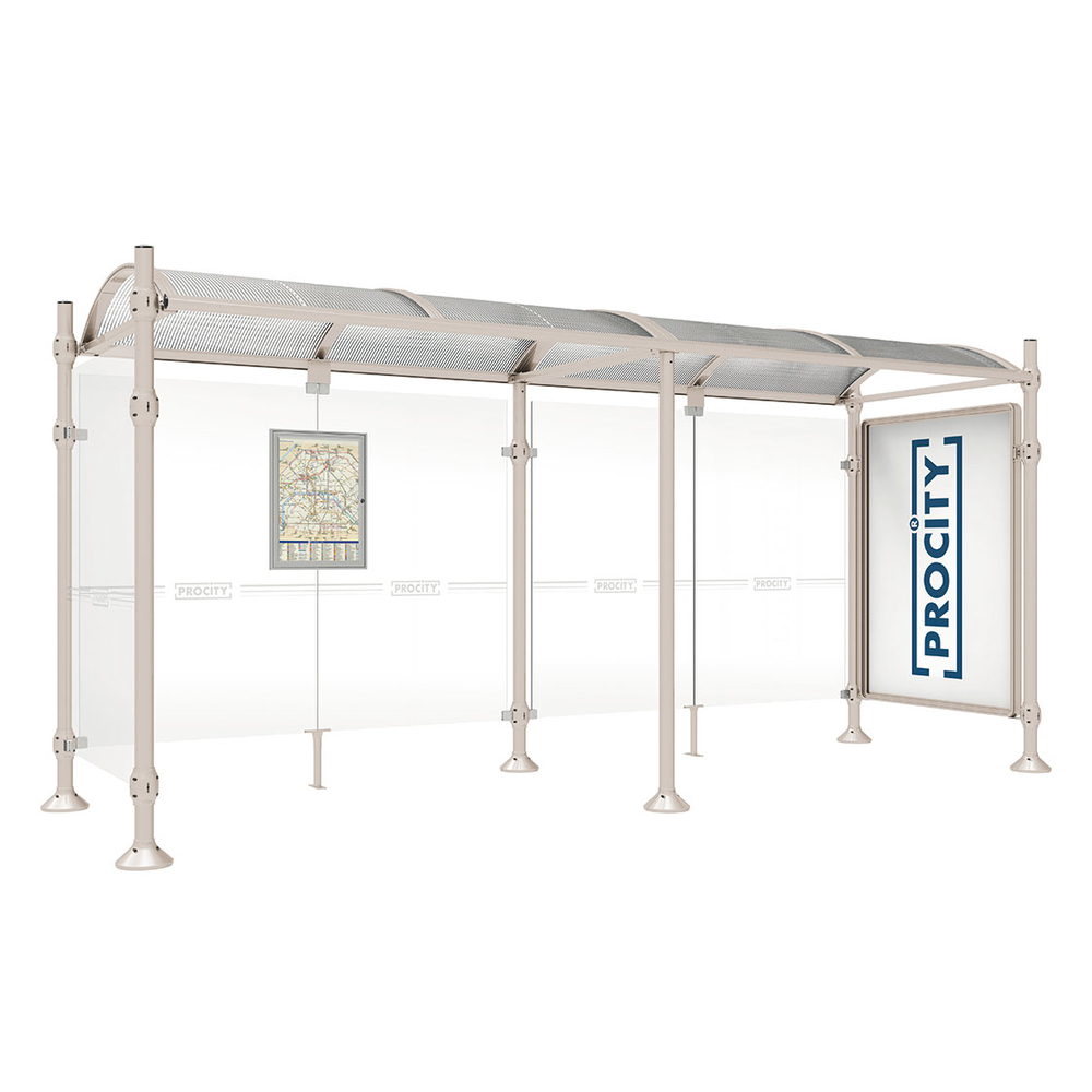 Découvrez Station bus Province Inox brossé RAL7044 - 5000 mm - une vitrine 2000mm et un bardage latéral - PROCITY - 529384.7044 disponible à l'achat