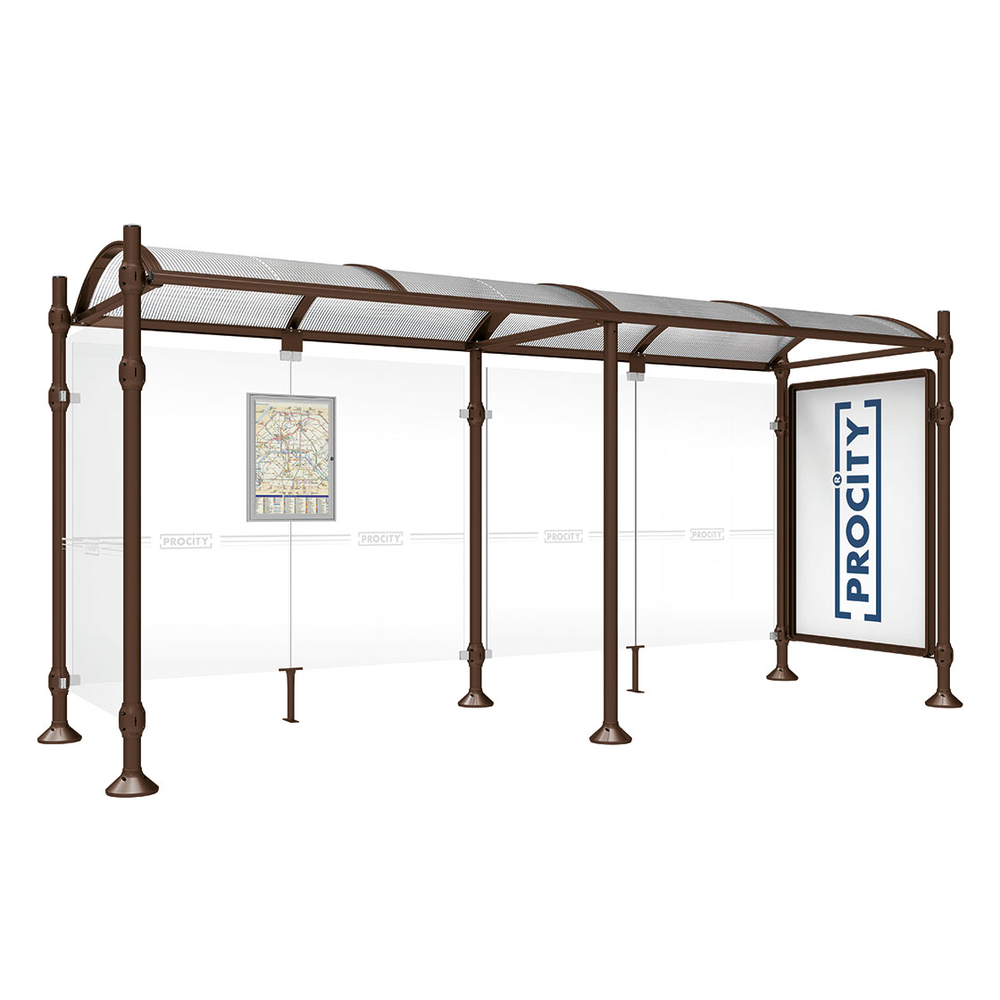 Station bus Province Inox brossé RAL8017 - 5000 mm - une vitrine 2000mm et un bardage latéral - PROCITY - 529384.8017