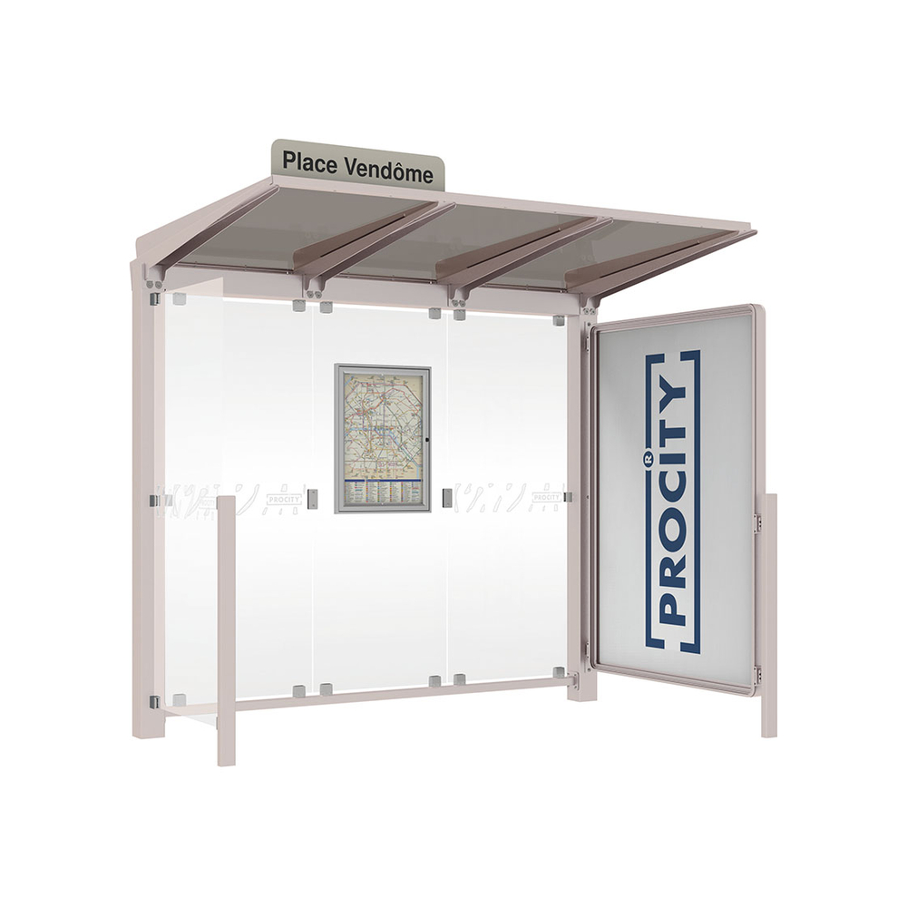 Station bus Venise RAL7044 - 2500 mm - une vitrine 2000mm et un bardage latéral - PROCITY - 529652.7044
