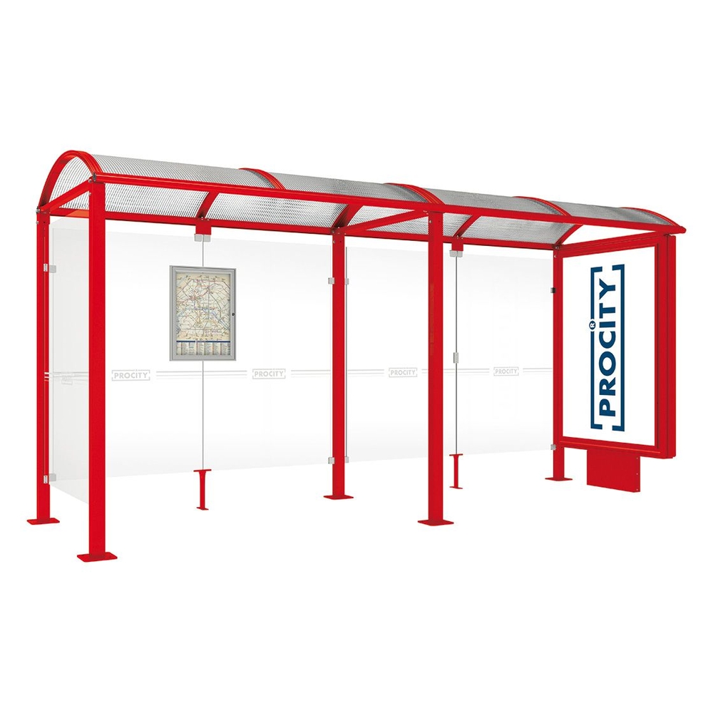 Station bus Voûte - poteaux carrés RAL3020 - 5000 mm - Caisson lumineux VIP à droite et bardage à gauche - PROCITY - 529359.3020