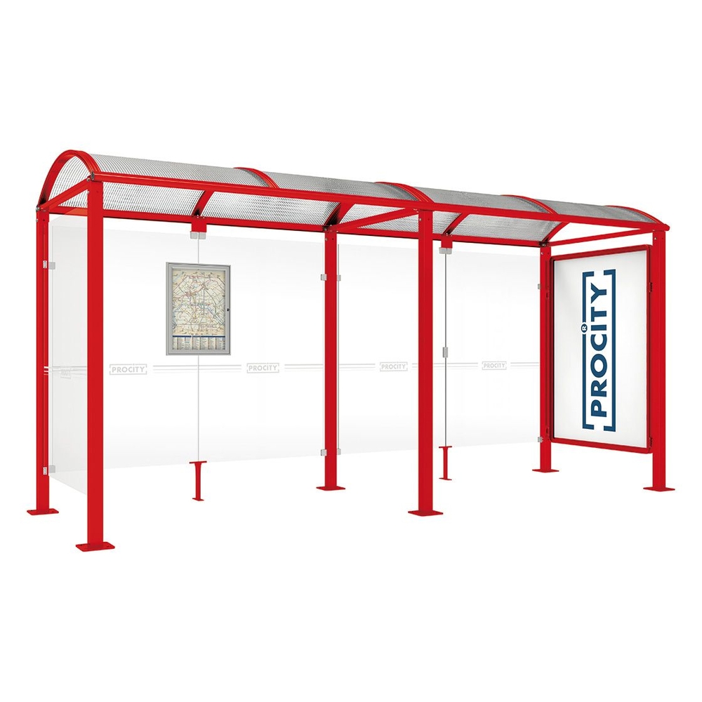 Station bus Voûte - poteaux carrés RAL3020 - 5000 mm - Vitrine 2000mm à droite et bardage gauche - PROCITY - 529339.3020