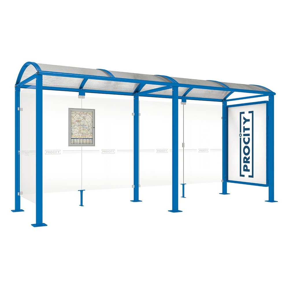 Station bus Voûte - poteaux carrés RAL5010 - 5000 mm - Vitrine 2000mm à droite et bardage gauche - PROCITY - 529339.5010