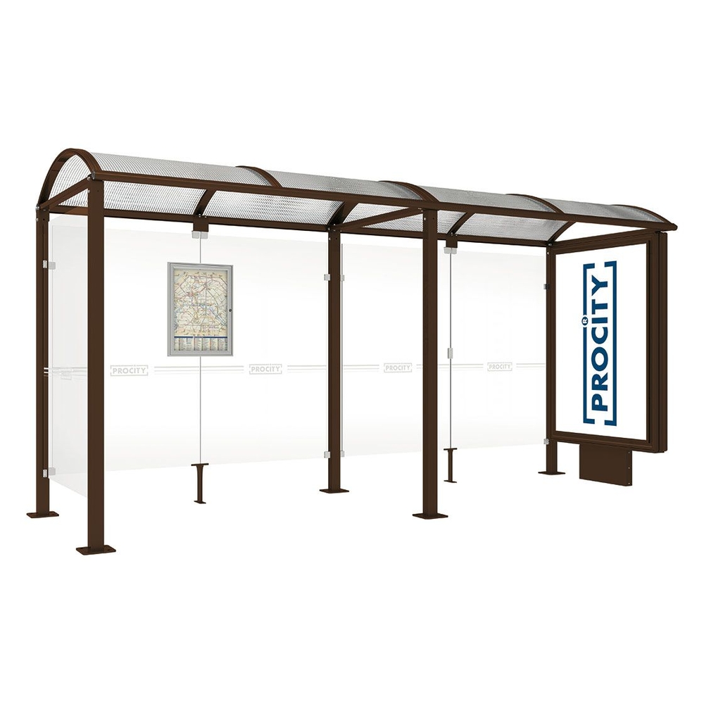 Station bus Voûte - poteaux carrés RAL8017 - 5000 mm - Caisson lumineux VIP à droite et bardage à gauche - PROCITY - 529359.8017