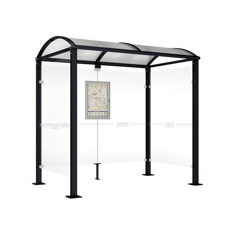 Découvrez Station bus Voûte - poteaux carrés RAL9005 - 2500 mm - Bardages à gauche et droite - PROCITY - 529318.9005 disponible à l'achat