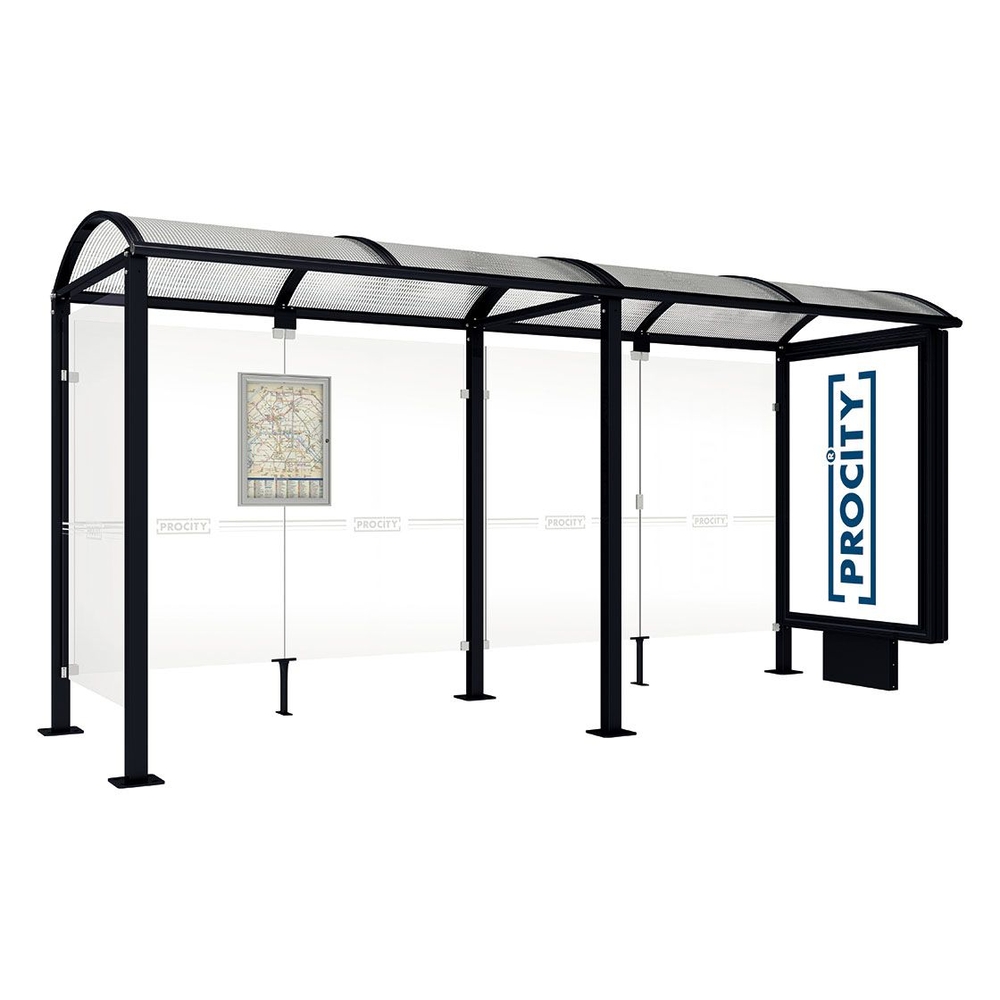 Station bus Voûte - poteaux carrés RAL9005 - 5000 mm - Caisson lumineux VIP à droite et bardage à gauche - PROCITY - 529359.9005