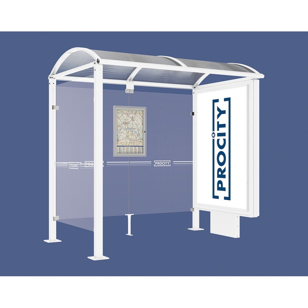 Station bus Voûte - poteaux carrés RAL9010 - 2500 mm - Caisson lumineux VIP à droite et bardage à gauche - PROCITY - 529358.9010