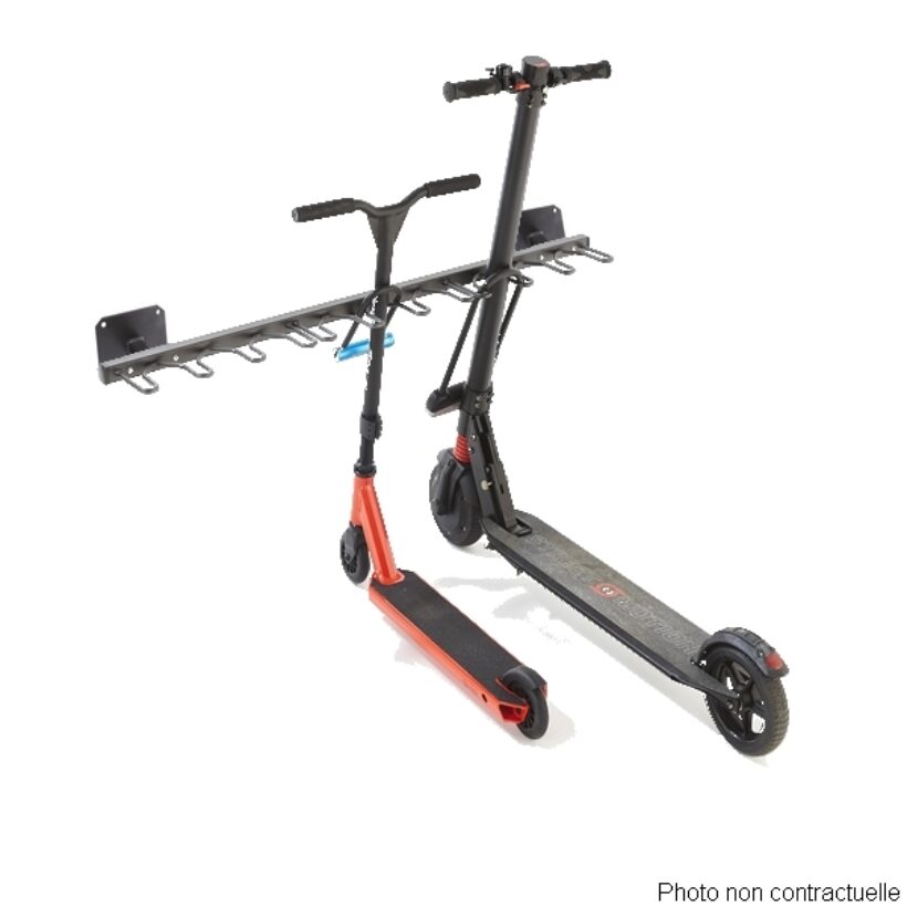- Facilite le rangement sécurisé de 9 trottinettes murales.