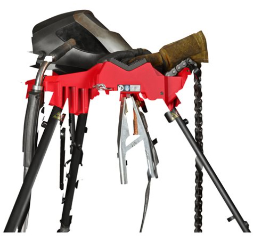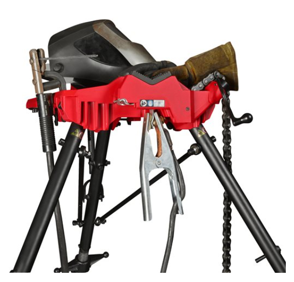 - Support à tubes avec étau à chaîne pliable pour praticité.