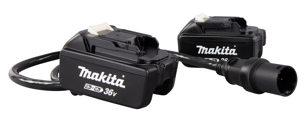 La batterie est dotée d’une jauge de niveau, d’un interrupteur principal avec fonction d’arrêt automatique et d’un adaptateur d’outils avec cordon d’alimentation pivotant pour les outils LXT 18 V et 18 V X2.