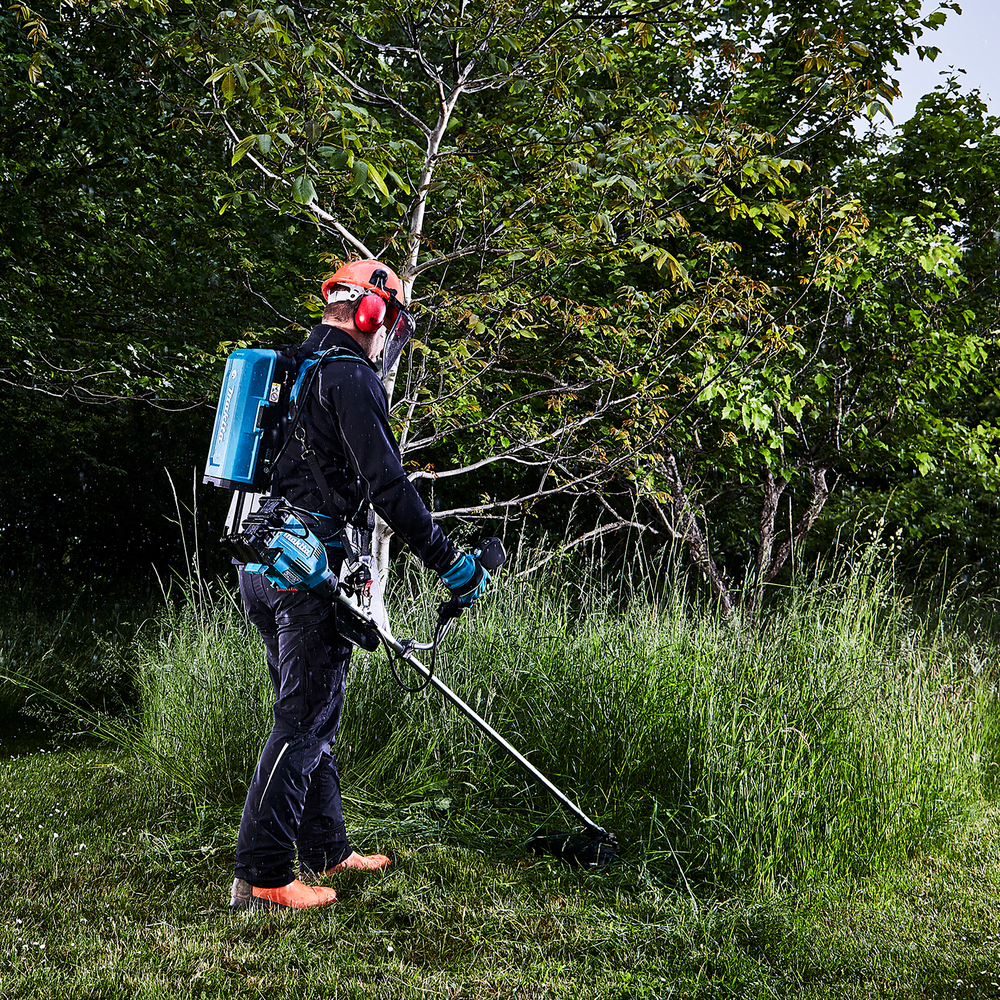 La batterie est bien calée dans le dos, ce qui rend le travail confortable et prolonge l’autonomie de l’outil. La batterie peut également être utilisée comme bloc d’alimentation fixe en détachant le harnais dorsal.