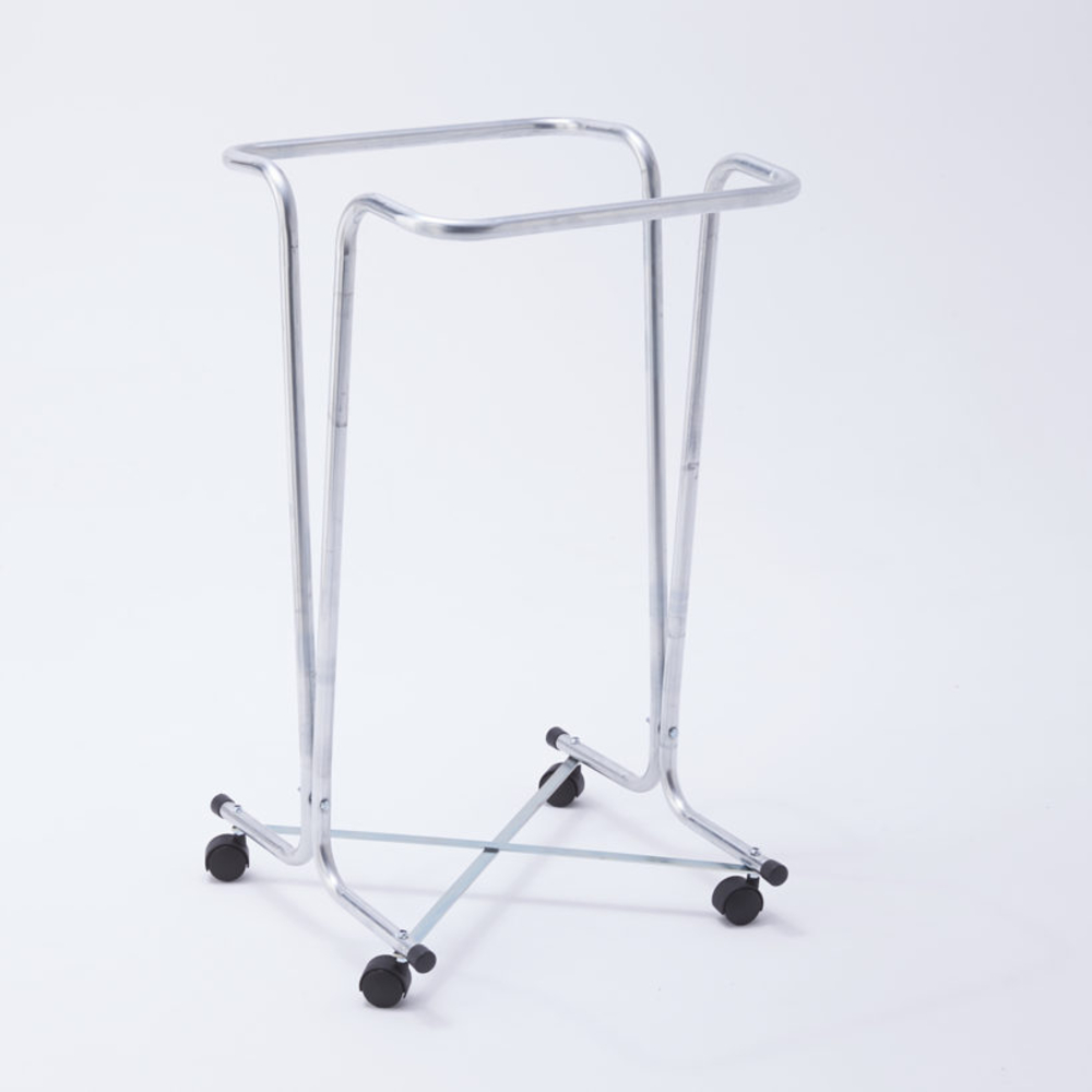 Fabriqué en tube d'acier zingué de Ø 20 mm, ce produit se compose également de deux fers plats croisés qui garantissent que le sac reste en place au sol, même lors du déplacement du support. De plus, il est équipé de quatre roulettes de Ø 50 mm pour une maniabilité optimale. Avec des dimensions de 460 x 445 x HT 790 mm, ce support s'intègre facilement dans divers espaces de travail.