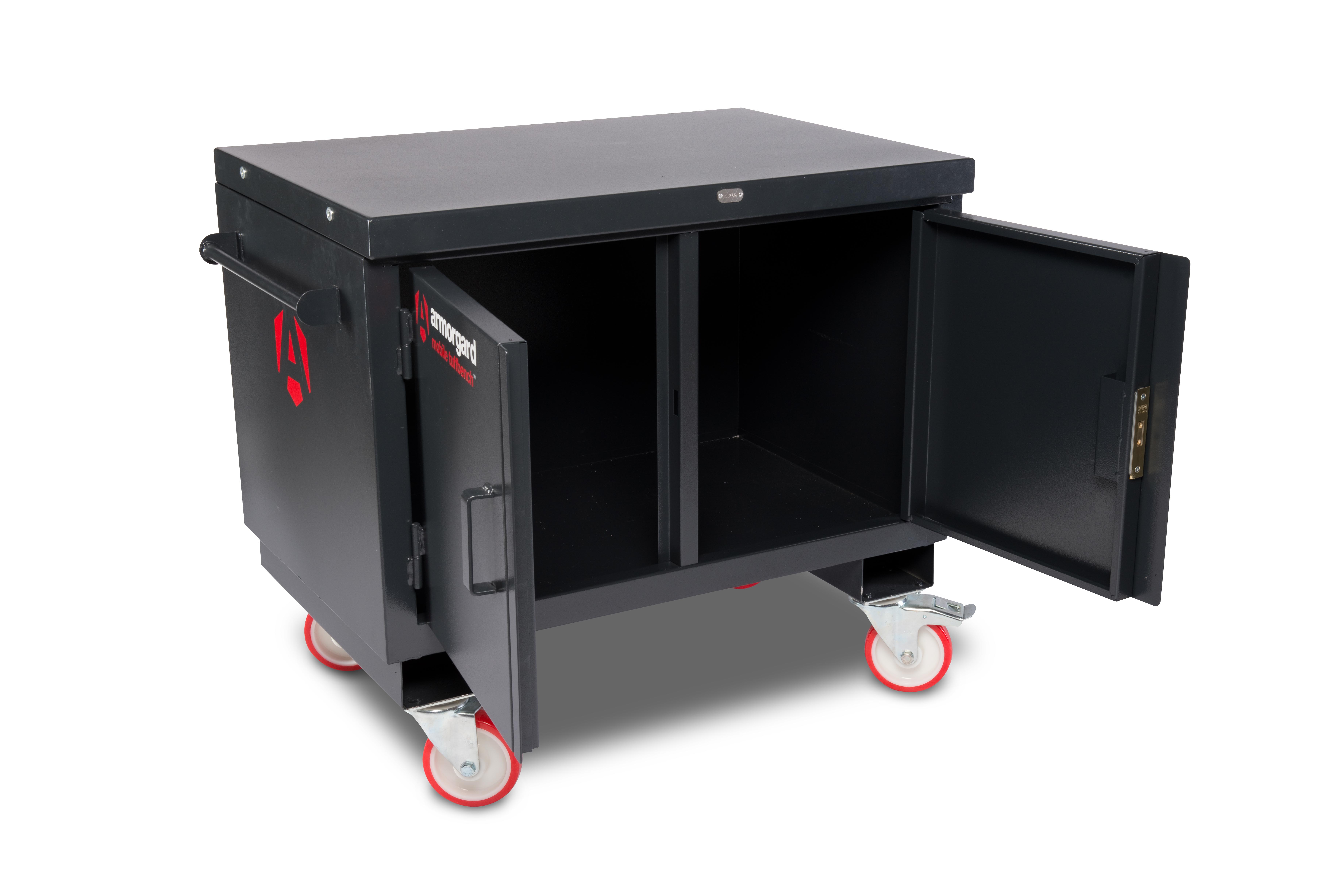 Le Mobile TuffBench est à la fois un établi mobile et une armoire de rangement sécurisée.