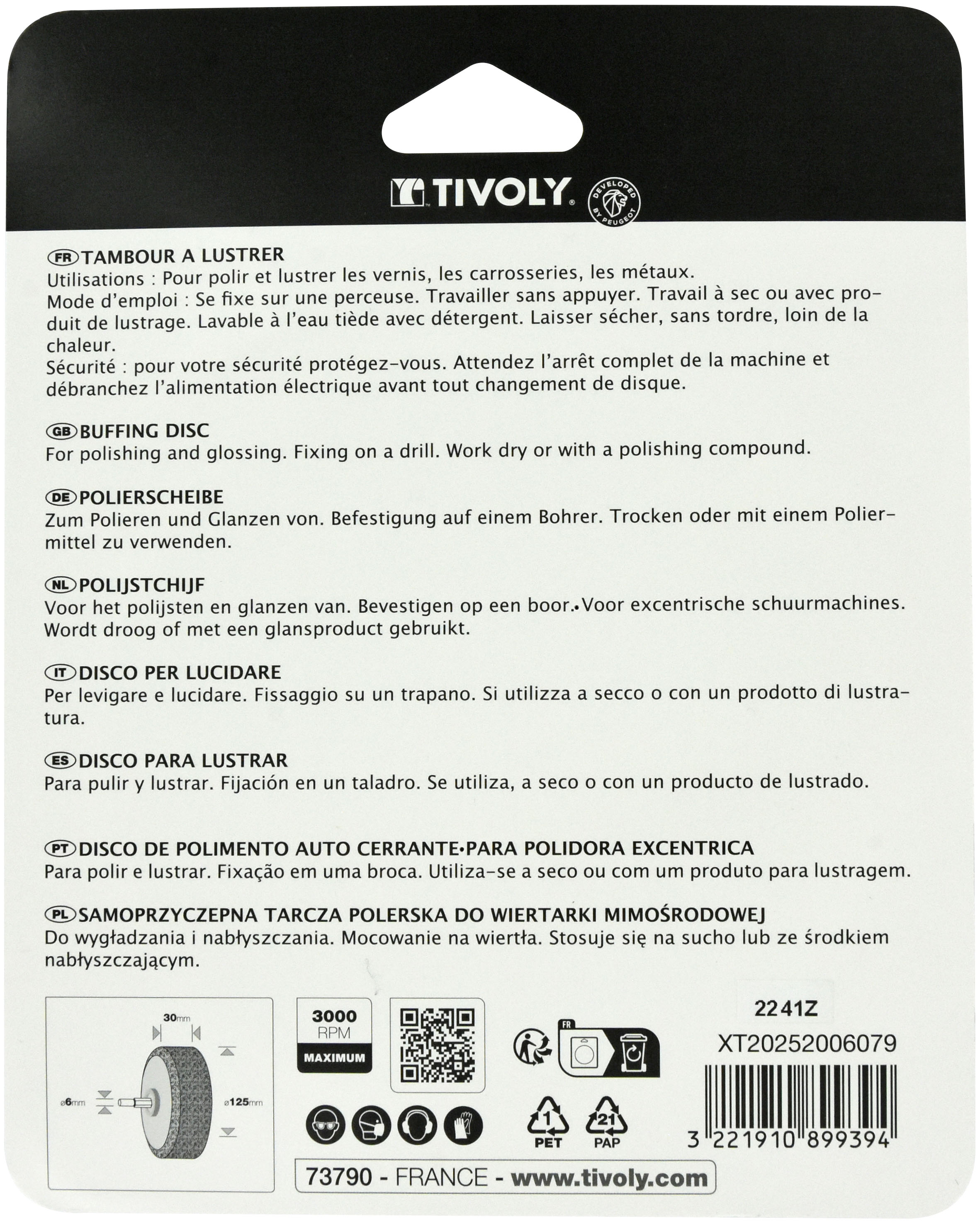 TAMBOUR DE POLISSAGE (Blister) / Ø: 125 / TIVOLY - XT20252006079