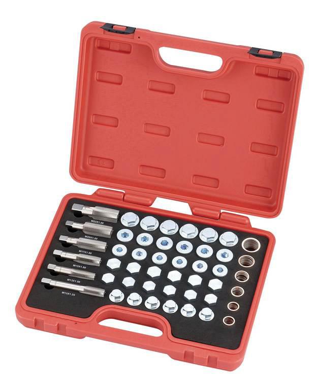 Coffret de réparation de carters d'huile avec tarauds et bouchons