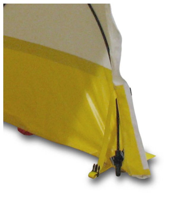 Cette tente protège des intempéries ; les glissières sont recouvertes d'une bande étanche qui évite toute infiltration d'eau en cas de pluie. Au niveau sécurité, la tente a été dotée de bandes réfléchissantes pour être visible de nuit.