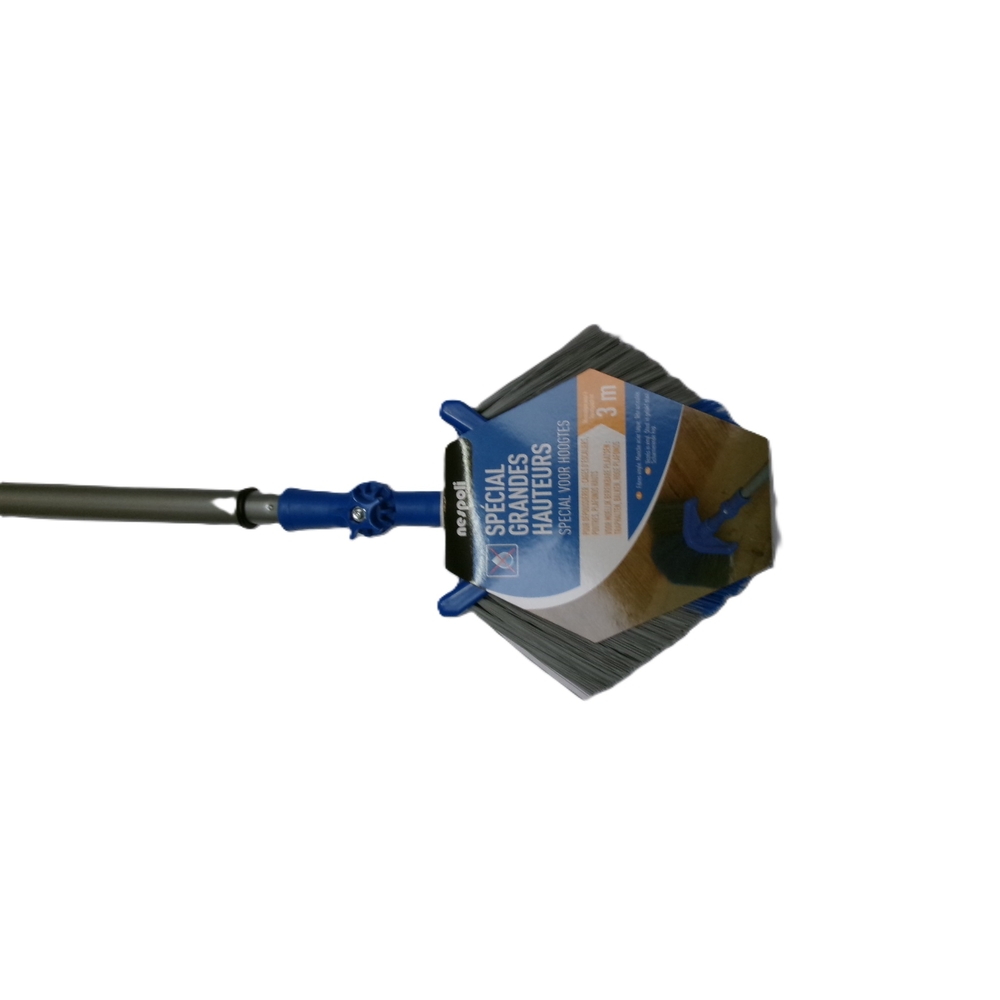 Conçue pour les grandes hauteurs, sa tête articulée permet une grande flexibilité pour le nettoyage des cages d'escaliers, poutres et plafonds. Pour une utilisation optimale, déployez le manche télescopique jusqu'à 3 mètres et ajustez l'angle de la tête selon la tâche à réaliser.