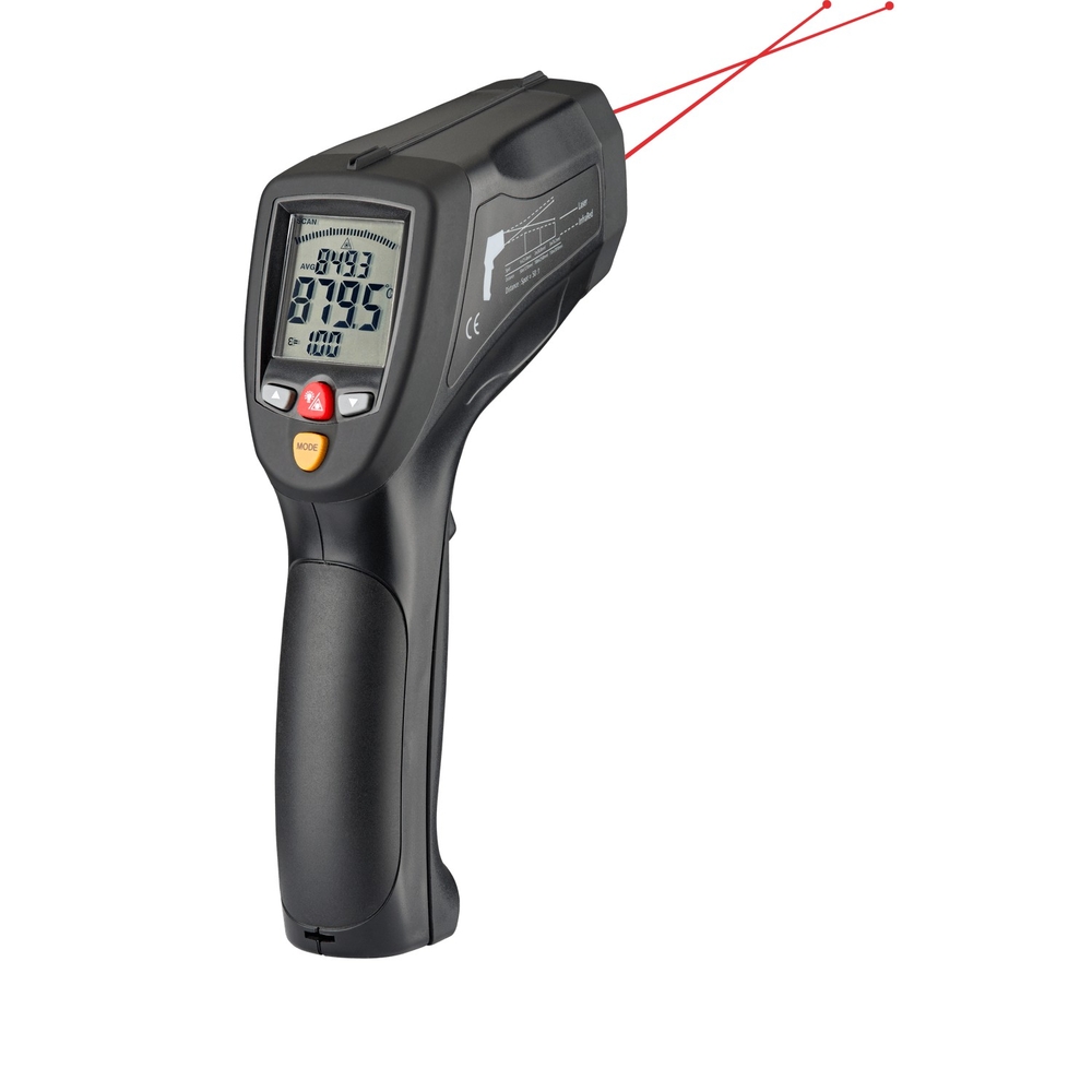 Fonctionnant sans contact, il utilise un laser à double point pour offrir une précision optimale. Sa vitesse de mesure rapide, inférieure à 150 ms, garantit des résultats fiables avec une précision de ± 1 %. En outre, grâce à sa mémoire intégrée, il est possible d’enregistrer jusqu'à 99 mesures et de transmettre les données à un PC via USB.