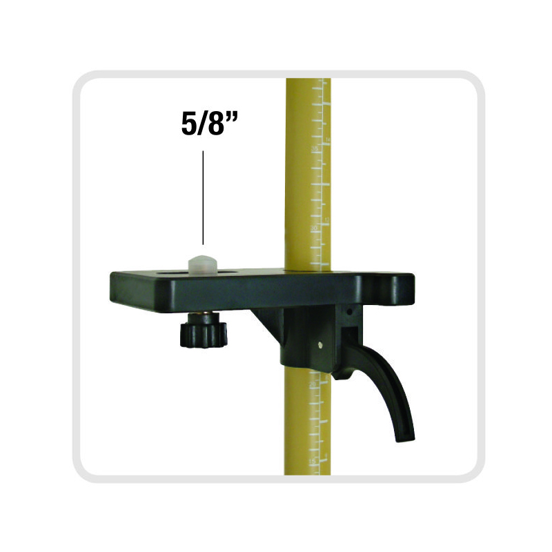 - Surface d'appui coulissante le long de la verticale, avec verrouillage rapide par levier, avec vis de 5/8'.
