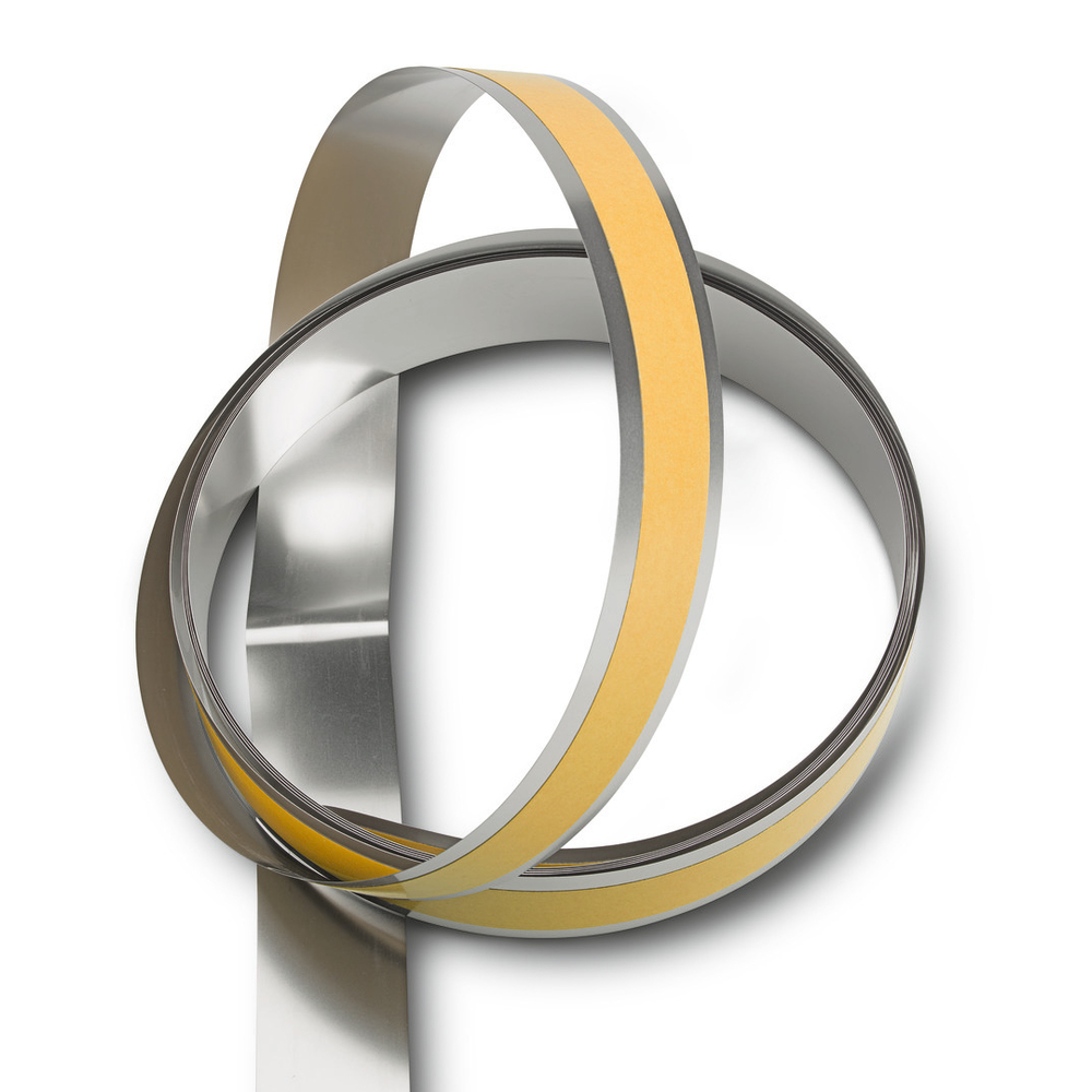 Tôle de recouvrement en acier inoxydable. Pour protéger les surfaces en acier inoxydable des rayures provoquées lors du meulage. Parfait pour le ponçage en biais de profils soudés en acier inoxydable. Le côté couvert est protégé par la tôle de recouvrement pendant le ponçage, le satinage ou le matifiage.