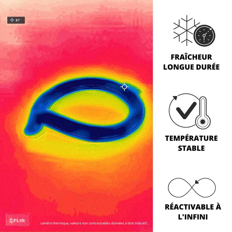 L’ensemble du produit participe au refroidissement, garantissant une efficacité homogène sur toute la surface de contact. Ce tour de cou est particulièrement recommandé lors d’activités sportives ou professionnelles exposées à la chaleur, mais aussi pour un usage quotidien afin de mieux supporter les pics de température.