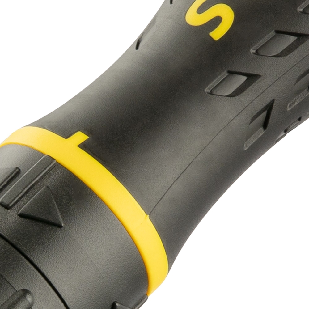 Ce tournevis à cliquet offre un mécanisme à trois positions pour visser, dévisser ou bloquer. Sa poignée bi-matière assurer un confort de prise, permettant un usage prolongé sans gêne. Avec son système de billes à roulement, le changement d'embouts est rapide et facile. Les embouts sont rangés à l’arrière et au sommet du manche, favorisant un accès rapide selon vos besoins.