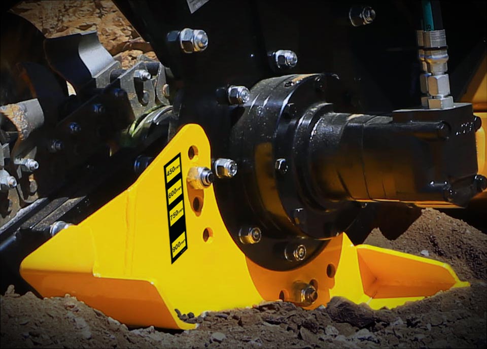 Le nouveau design de pied permet également d'envoyer les monticules sur la chaine, ce qui permet de les transférer à la vrille d'évacuation pour obtenir un espace côté travail de la trancheuse plus propre.