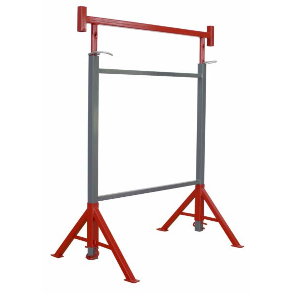 Tréteau à pieds tournants, réglable en hauteur de 1,20 à 2,00 m.