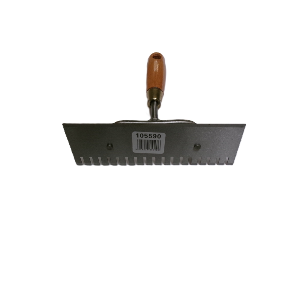 Cette truelle de chantier est conçue avec un manche en bois teinté pour une prise en main agréable et durable. Sa lame en acier trempé assure robustesse et précision lors de l’application de plâtre, tandis que la virole en acier laitonné garantit une solidité à toute épreuve. Dotée d'un profil dentelé d’un côté et lisse de l’autre, cette truelle vous permet d’adapter votre technique en fonction des besoins de votre projet, que ce soit pour lisser ou structurer le plâtre.