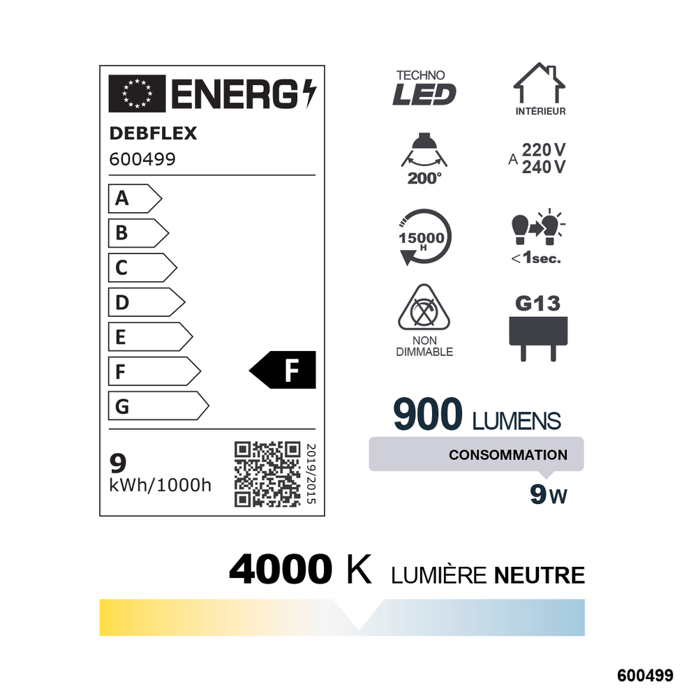 Découvrez TUBE LED T8 600MM SMD G13 9W 4000K 900LM - DEBFLEX - 600499 disponible à l'achat
