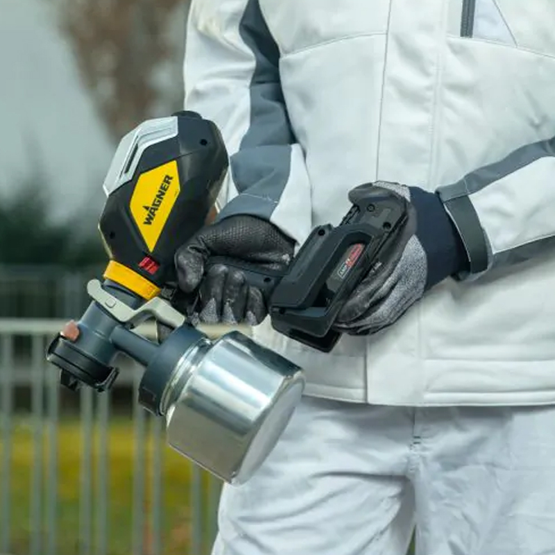 Le pulvérisateur de peinture WAGNER FinishControl 4000 fonctionne sur batterie. Vous bénéficiez ainsi d'un travail sans fil avec la technologie XVLP et pouvez facilement pulvériser même les travaux les moins accessibles. En outre, vous bénéficiez d'un jet très propre et professionnel, de changements de couleur rapides et d'un pulvérisateur de taille pratique.