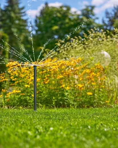 La tuyère escamotable MD40/300 de GARDENA permet d'irriguer automatiquement les plantes de haute taille. Élément du système d'arrosage GARDENA, la tuyère a une hauteur impressionnante de 30 cm, ce qui vous garantit un arrosage sans effort, même des plantes les plus hautes. Grâce à un système enterré pratique, la tuyère d'arrosage est à peine visible dans votre jardin. La tuyère escamotable assure une distribution optimale de l'eau, quelle que soit la portée du jet et la surface à arroser. Cela vous permet d'économiser de l'eau. Vous pouvez régler la portée du jet entre 2,5 et 3,5 m et la zone de pulvérisation de 80 à 360°. Grâce à son design ergonomique, vous n'avez besoin d'aucun outil. Le débit d'eau réduit de la buse rotative permet une meilleure absorption de l'eau par la plante, évitant ainsi le gaspillage d'eau. La tuyère délivre un jet uniforme dans toute la zone d'irrigation. La tuyère d'arrosage a deux positions de filetage différentes sur le côté et peut donc varier dans la profondeur d'installation. Elle comporte un filetage externe de 3/4" et peut être raccordée au tuyau de raccordement à l'aide des raccords Quick and Easy de GARDENA. Grâce au système pratique double Pop-up et le filtre intégré, la tuyère est protégée contre la saleté provenant de l'extérieur. La tuyère escamotable MD40/300 est compatible avec tous les produits du système d'arrosage GARDENA. La buse a le même débit d'eau que les turbines escamotables T100, T200 et T380, ce qui vous permet de la combiner à d'autres arroseurs dans une même zone d'irrigation. Le système d'arrosage qui comprend votre pelouse pour une irrigation fiable et économe en eau.