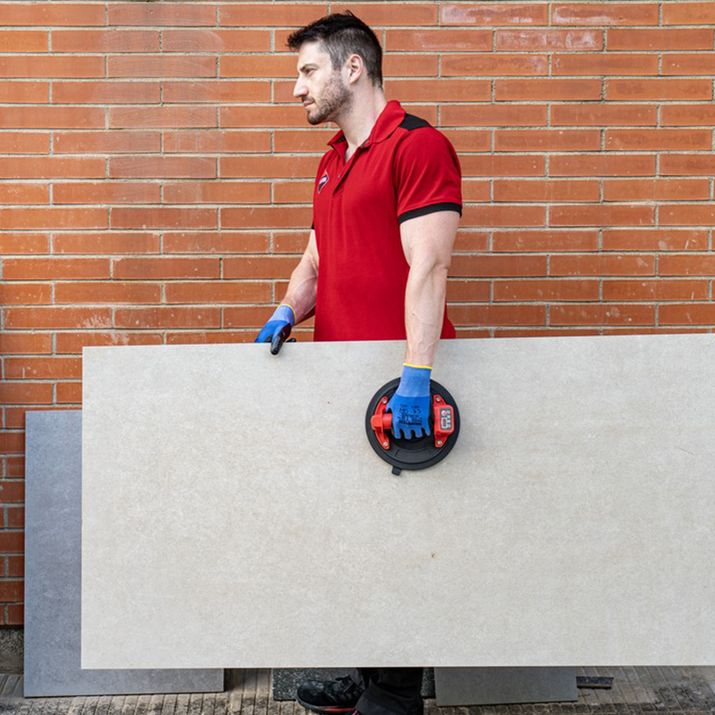 Ventouse à batterie conçue pour la manipulation de carreaux en céramique.