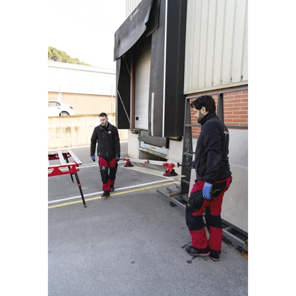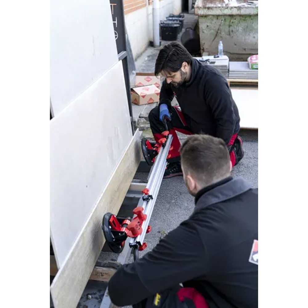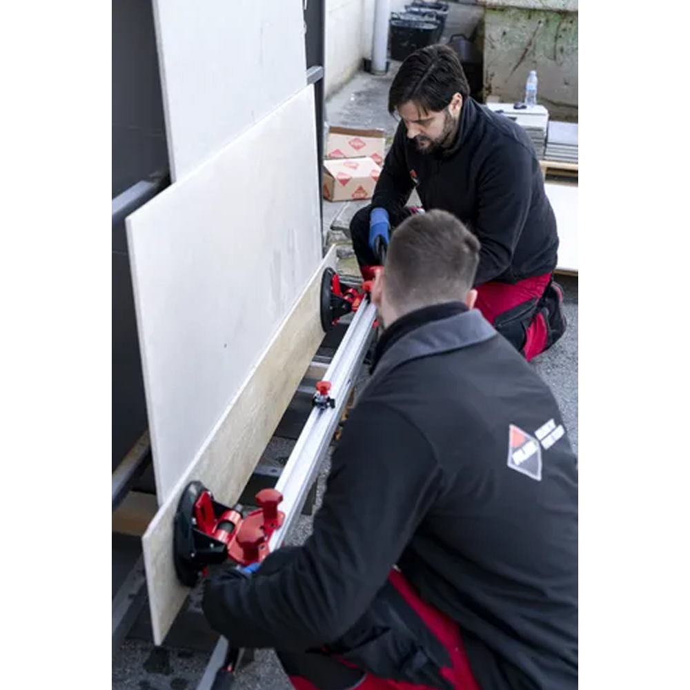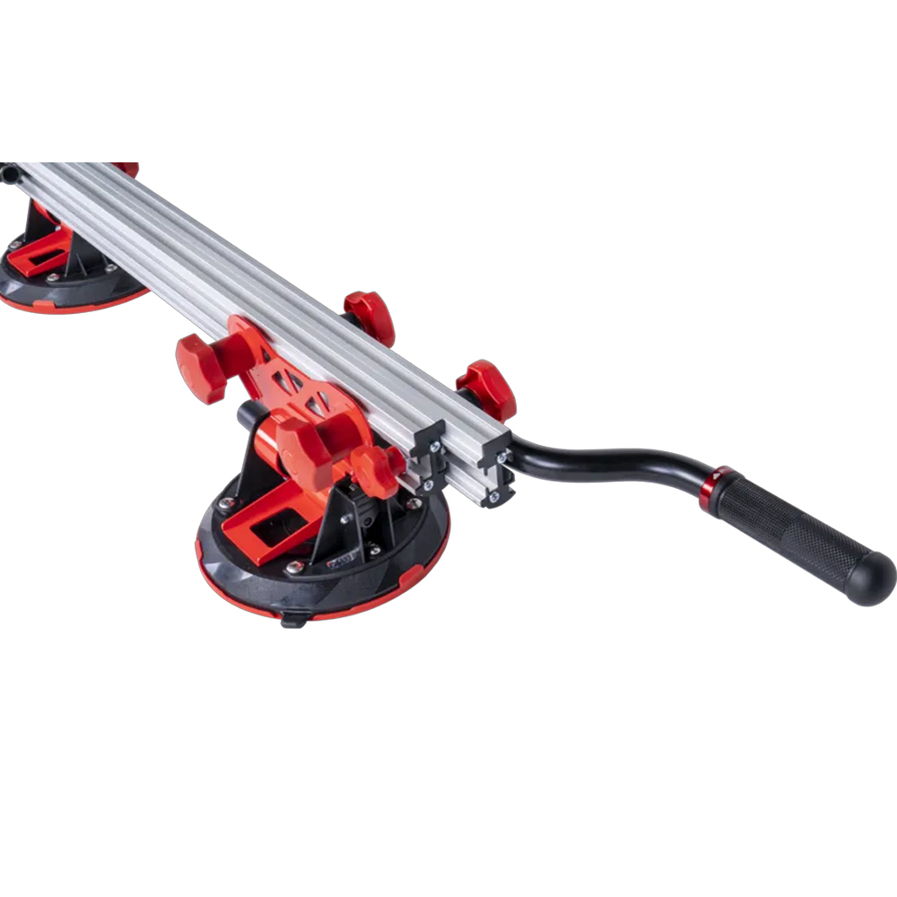 Le Slab Trans Mini est conçu pour le transport sécurisé de carreaux de grand format. Ses ventouses de 20 cm de diamètre, équipées d’indicateurs de sécurité, permettent de surveiller en permanence l’aspiration afin d’éviter toute perte accidentelle pendant la manipulation. Chaque ventouse dispose également d’un protecteur qui prévient les dommages aux carreaux lors du transport. Avec une capacité de charge maximale atteignant 55 kg, le Slab Trans Mini peut supporter jusqu’à 40 kg sur toute sa longueur. Ses dimensions de 231 cm de long, 26 cm de large et 18 cm de haut en font un outil compact et ergonomique pour le déplacement et la manipulation de matériaux lourds et délicats.