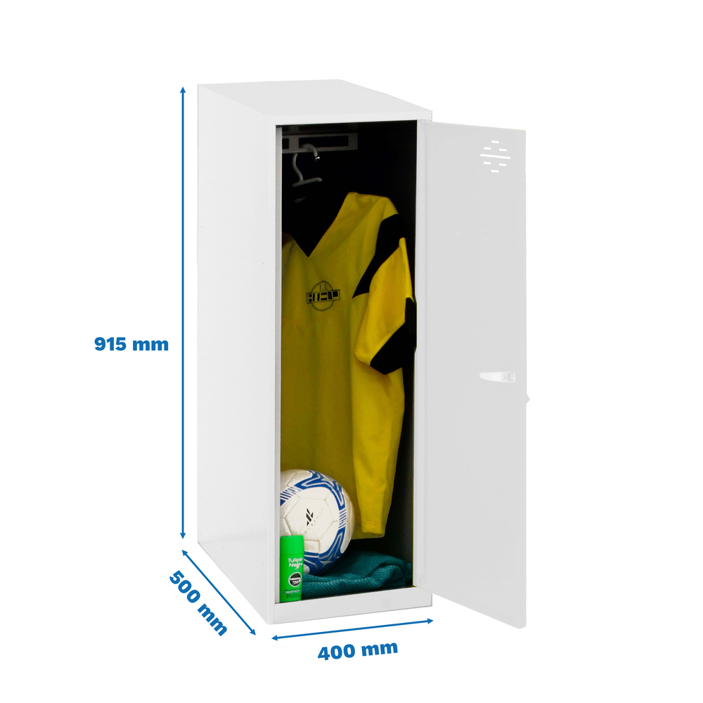 Ce vestiaire aux dimensions de 915 mm de hauteur, 400 mm de largeur et 500 mm de profondeur se monte facilement sans vis, ce qui en facilite l'installation. Il est parfait pour les environnements tels que les bureaux, les établissements scolaires ou les espaces publics où le besoin de sécurité et de rangement est essentiel.