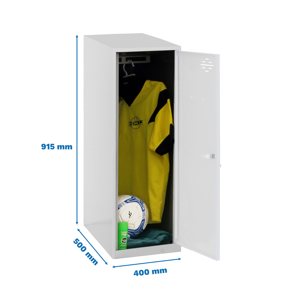 Ce vestiaire, avec ses dimensions de 915x400x500 mm, offre une solution de rangement pratique pour les espaces de travail ou les zones publiques. Son montage sans vis facilite son installation, permettant une mise en place rapide et sans complication.