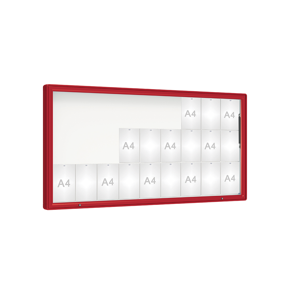 Découvrez la vitrine 2000, une solution élégante et personnalisable pour vos affichages, disponible en couleur RAL 3004.