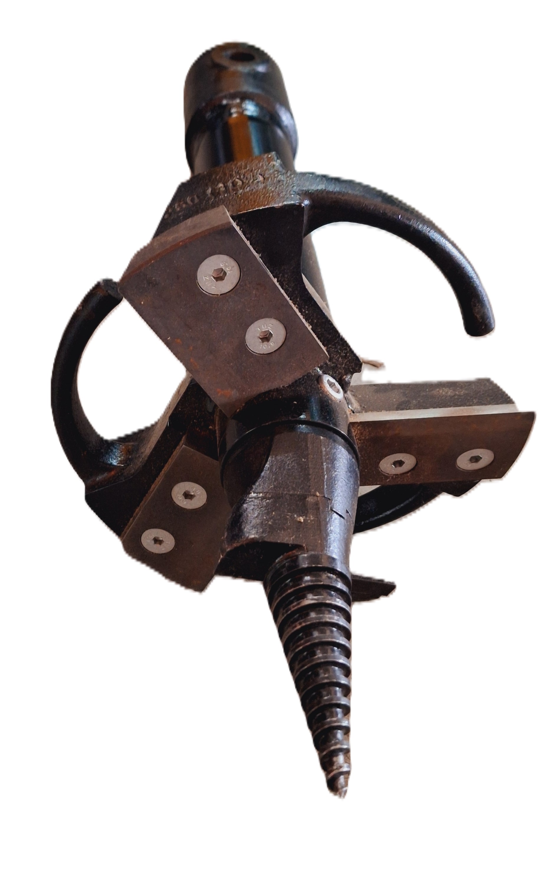 La vrille de dessouchage : ce matériel est destiné à être monté sur un moto réducteur de tarière (emmanchement rond de 65). Vous pourrez ainsi procéder au rabotage de souche de tous diamètres avec votre mini-pelle/mini-chargeur.